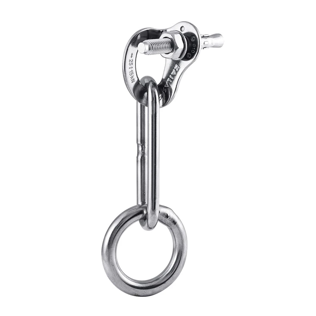 The Plate Belay Station is composed of a plate, an expansion bolt, a linking chain and a ring, suitable to set up a belay station and an anchor system for descending. Use in pairs for safety.